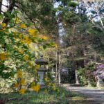 巨木群や山野草で知られる二所山田神社の、荘厳な杜。山アジサイや紅山シャクヤク等が静かに佇んでいます。